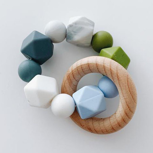 Sugar + Maple Silicone with Beechwood Teether – Multi Color