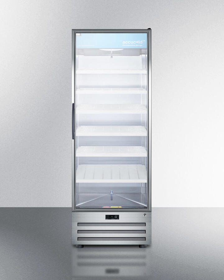 SUMMIT ACR1718RH Full-size Pharmaceutical All-refrigerator With A Glass Door, Lock, Digital Thermostat, and A Stainless Steel Interior and Exterior Cabinet