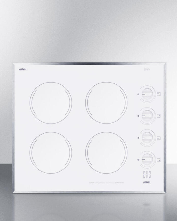 SUMMIT CR424WH 24″ Wide 4-burner Electric Cooktop In Smooth White Ceramic Glass Finish