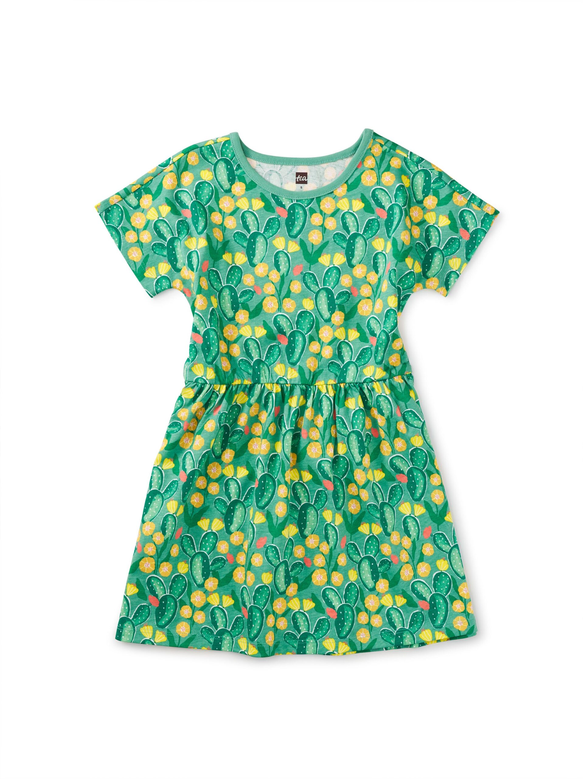 TEA SHORT SLEEVE TWIRL DRESS – CACTUS FLORAL