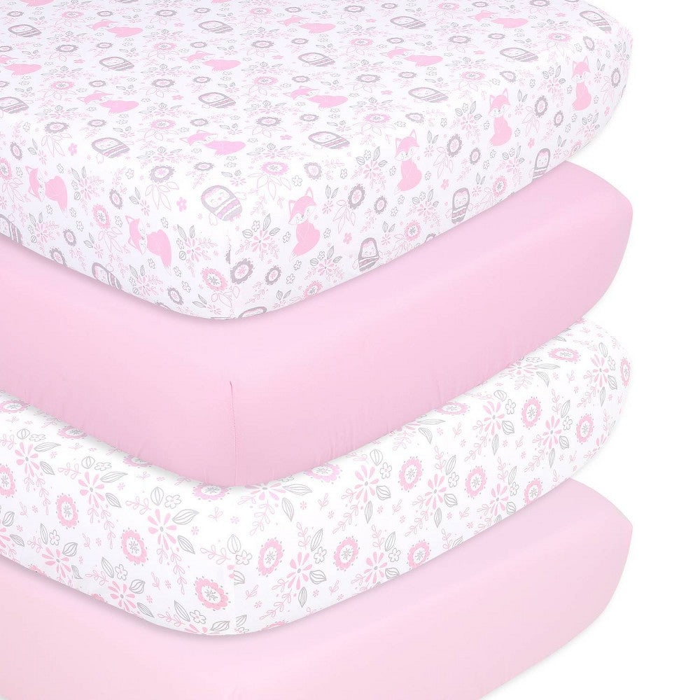 The Peanutshell Pink Floral Fitted Crib Sheet Set, 4 Pack