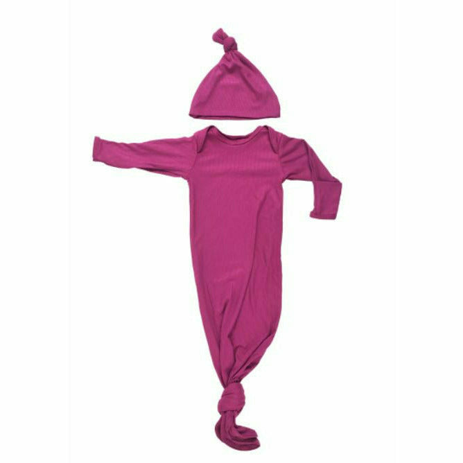 Three Little Tots Baby Knotted Gown & Hat – Magenta