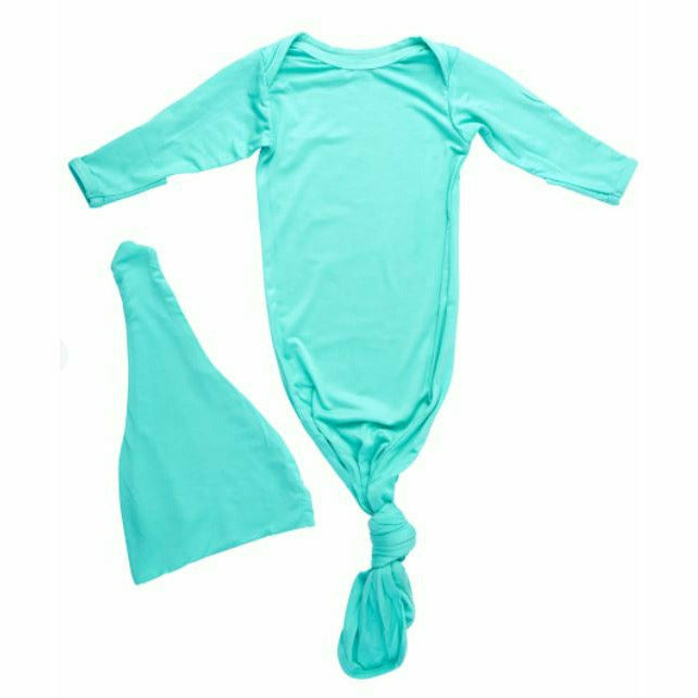Three Little Tots Baby Knotted Gown and Hat – Mint