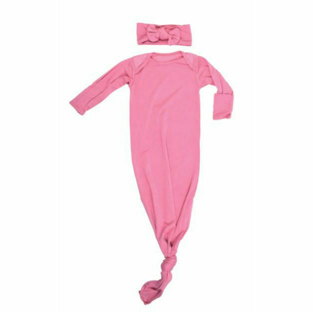 Three Little Tots Baby Knotted Gown and Bow – Rose