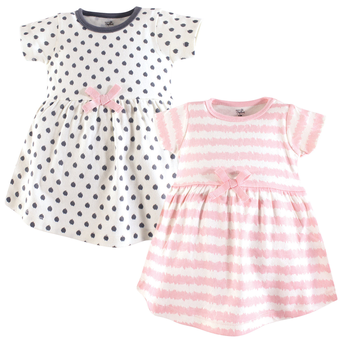 Touched by Nature Baby and Toddler Girl Organic Cotton Short-Sleeve Dresses 2 Pack, Tie Dye Stripe
