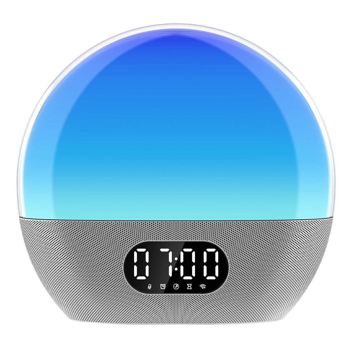 WiiM Wake-up Light All-in-One Sunrise Alarm Clock, Sound Machine, & Music Streamer (Polished Silver)