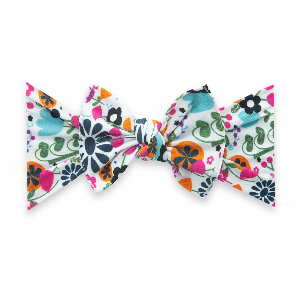 The Baby Bling Bows Printed Deb Headband – Holiday Plaid is one Dang-Enormous-Bow! A chunky, upsized version of the Classic Knot. A sweet soft bow with tailored tails adds to this traditional style bow. This headband is one size fits most and the size cannot be adjusted. The headband is sewn at a 6.5″ diameter (13″ circumference), keep in mind that measurement is before it stretches. We feel this is the perfect size for our soft nylon to fit a newborn and stretch comfortably as she grows into childhood. The bow measures approximately 4.5″ across. This style is secured with adhesive once tied and is not meant to be untied. The printed material is a soft nylon/spandex blend produced in China. Each headband is hand sewn and tied by women in our local community. Due to the nature of small-batch production color and sizing can vary slightly.