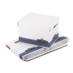 Heavy duty, triple-end, double-side construction stacks up stronger and withstands frequent handling. FastFold® quick and easy assembly. Reinforced tear-resistant hand holes make box comfortable to carry. Deep, locking lift-off lid stays in place for secure file storage. Smooth rolled edges add strength and prevent paper cuts.