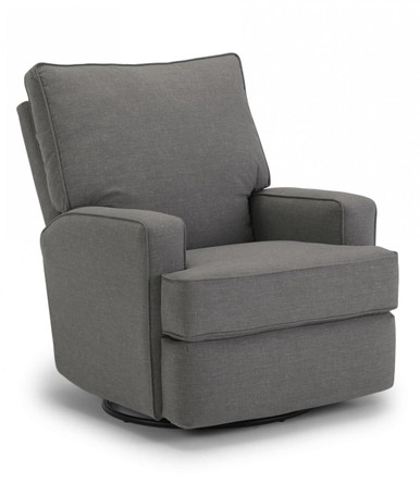The Natasha swivel glider chair has some modern twists to a traditional classic. Sleek lines and elegant seams give it a sophisticated look as well. Best Home Furnishings provides 700 fabric options to choose from, so find the upholstery that best suits your tastes and the atmosphere of your home. With kiln-dried hardwood-frame parts, reinforced joints, expert Indiana craftsmanship and reversible seat cushions, the Natasha glider chair will last as it is passed down from generation to generation. Choose to glide with your feet up with the matching glide ottoman.
