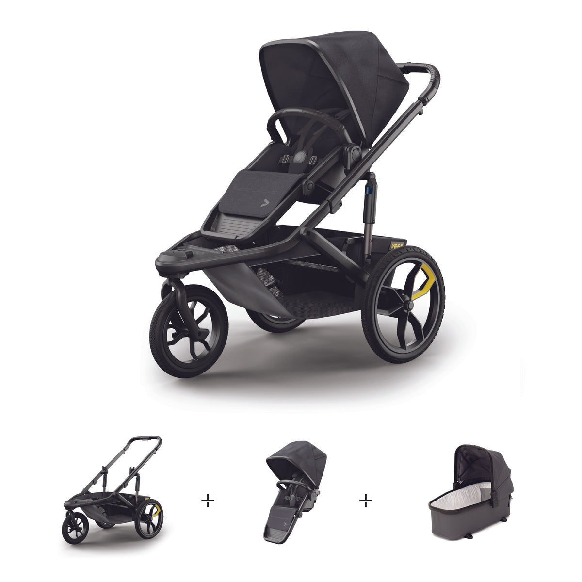 - Black colorway uses innovative solution dye process that conserves approximately 25-40 gallons of water per stroller