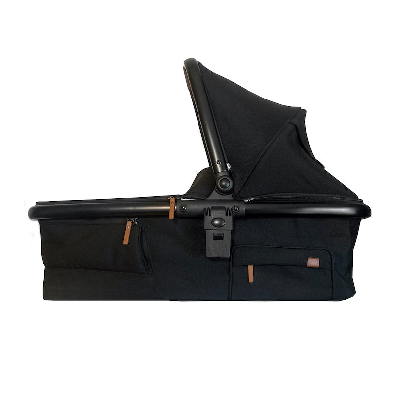 - Bassinet locks into its stand for stationary sleeping option