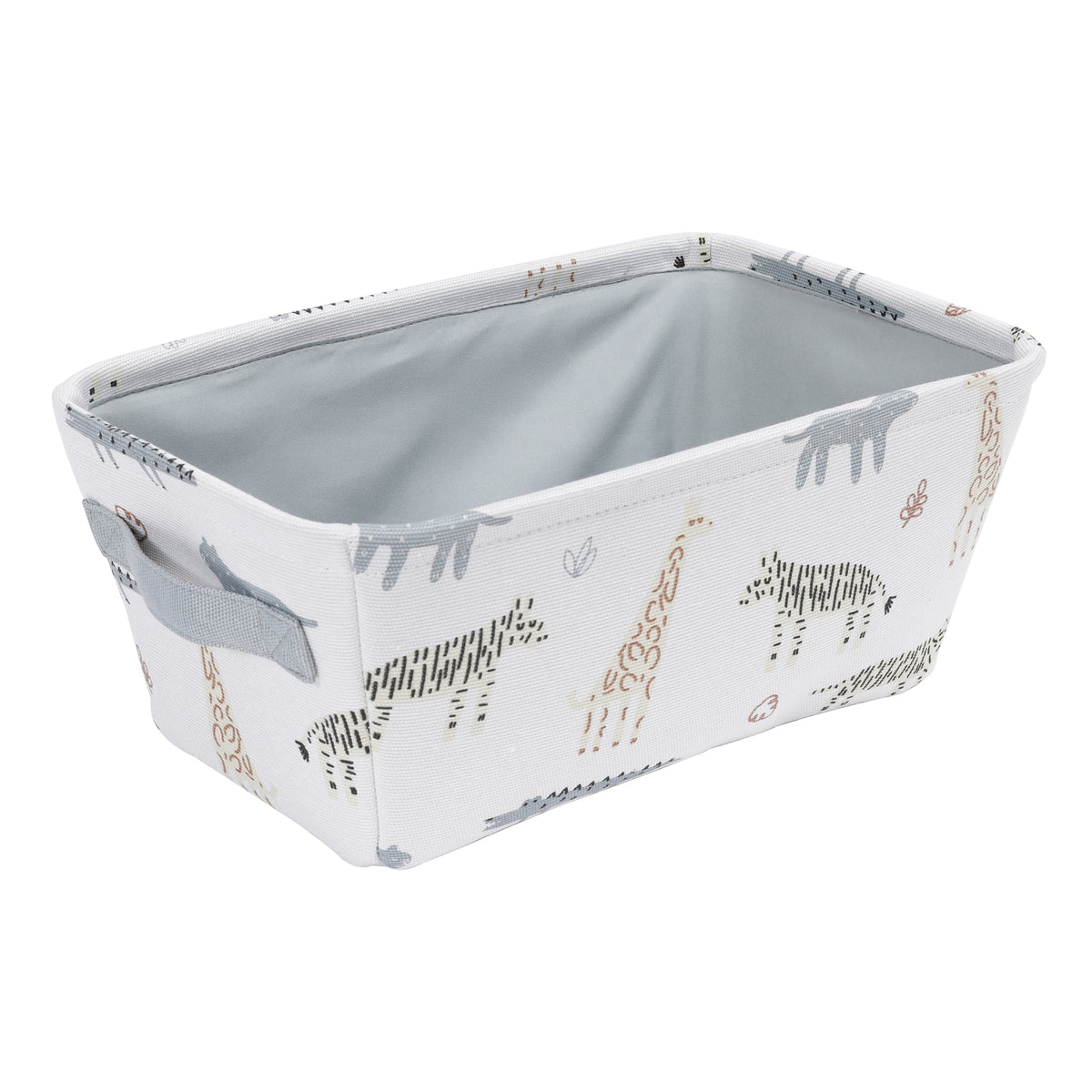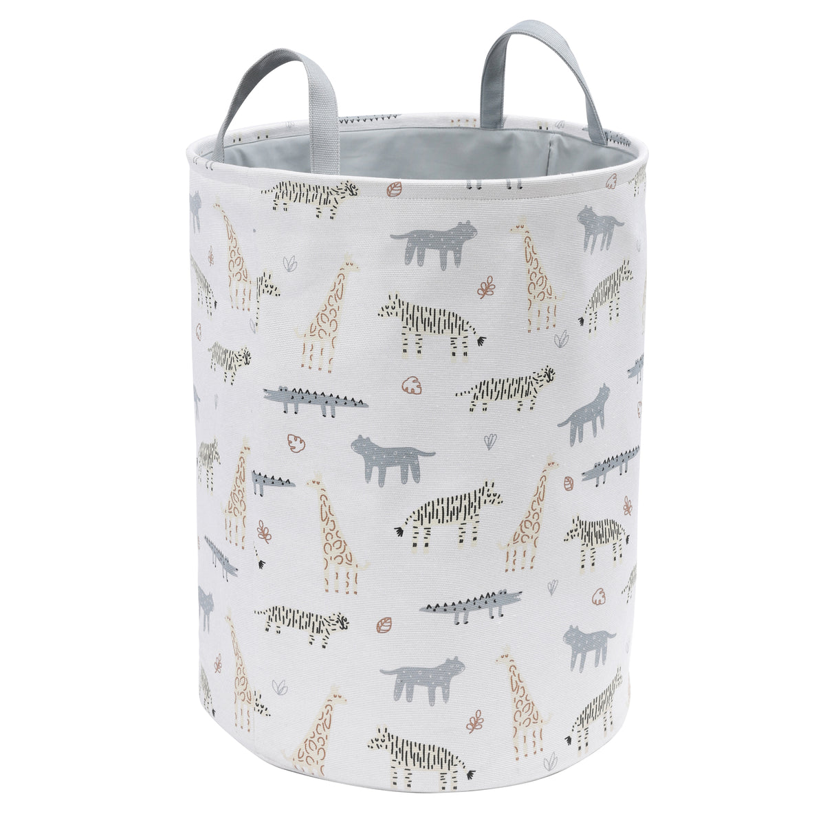 Accessorize your baby’s nursery with a Closet Complete Canvas Cylindrical Basket. Store and carry your diaper-changing necessities in this cute multi-purpose durable lined basket with fun animal print and cut-out handles for lifting.