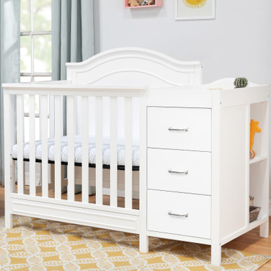 The polished Charlie 4-in-1 Crib features a graceful arched headboard with delicately carved molding and slim feet. The crib easily converts from crib to toddler bed, daybed and full-size bed.