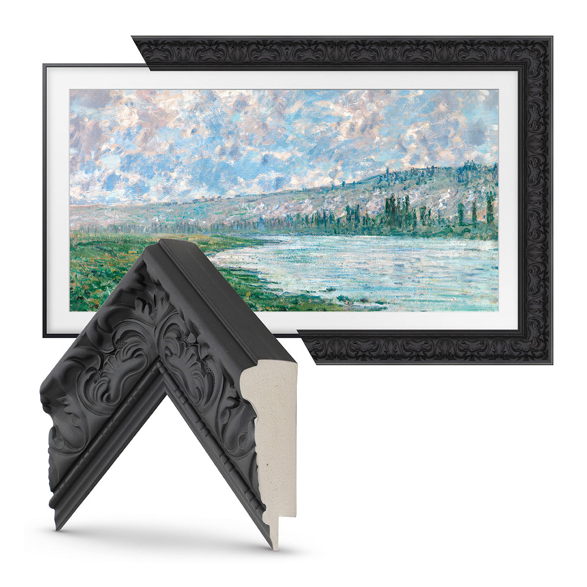 Deco TV Frames are the finishing touch your space needs. Bring your look together with an Alloy Bezel for a more contemporary feel. With each frame made of true aluminum, the metallic finish beautifully reflects the light into your room. The frame ships directly to you in four easy-to-assemble pieces and can be snapped together and fully attached to your Samsung TV in under 2 minutes. Each frame hooks onto the top of your Samsung Frame television and clips into place at the bottom to perfectly align with the edge of the TV screen. All frames can be easily installed by any consumer with no technical knowledge.