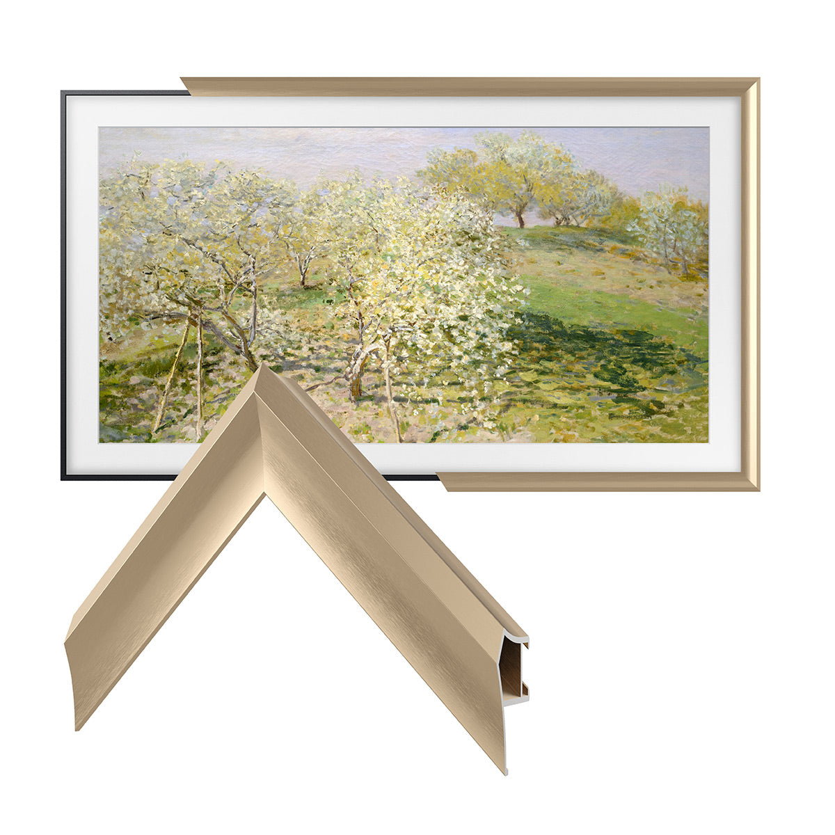 Deco TV Frames are the finishing touch your space needs. Bring your look together with an Alloy Bezel for a more contemporary feel. With each frame made of true aluminum, the metallic finish beautifully reflects the light into your room. The frame ships directly to you in four easy-to-assemble pieces and can be snapped together and fully attached to your Samsung TV in under 2 minutes. Each frame hooks onto the top of your Samsung Frame television and clips into place at the bottom to perfectly align with the edge of the TV screen. All frames can be easily installed by any consumer with no technical knowledge.