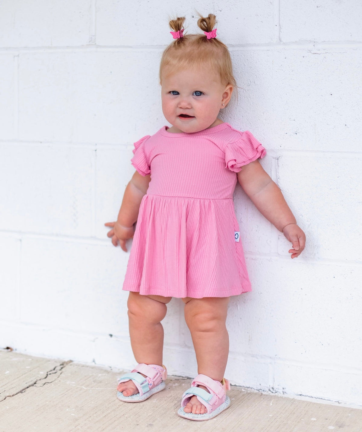 Get ready to twirl all day long in our Black Rib Dream Tutu Bodysuit Dress! Featuring short sleeves for comfort and a playful tutu, this dress is perfect for any little fashionista. Comfortable enough for all day wear, this dress is a dream come true!