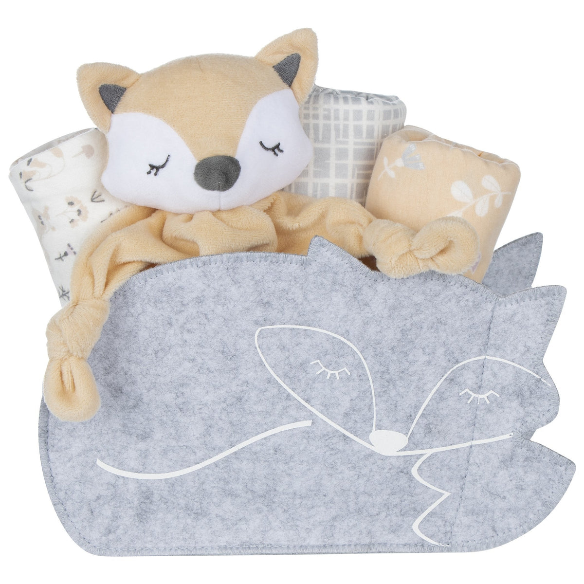 - Blanket measures 14″ X 14″. Rattle measure 2″h X 3.5″w. Hat fits 0-6 months.