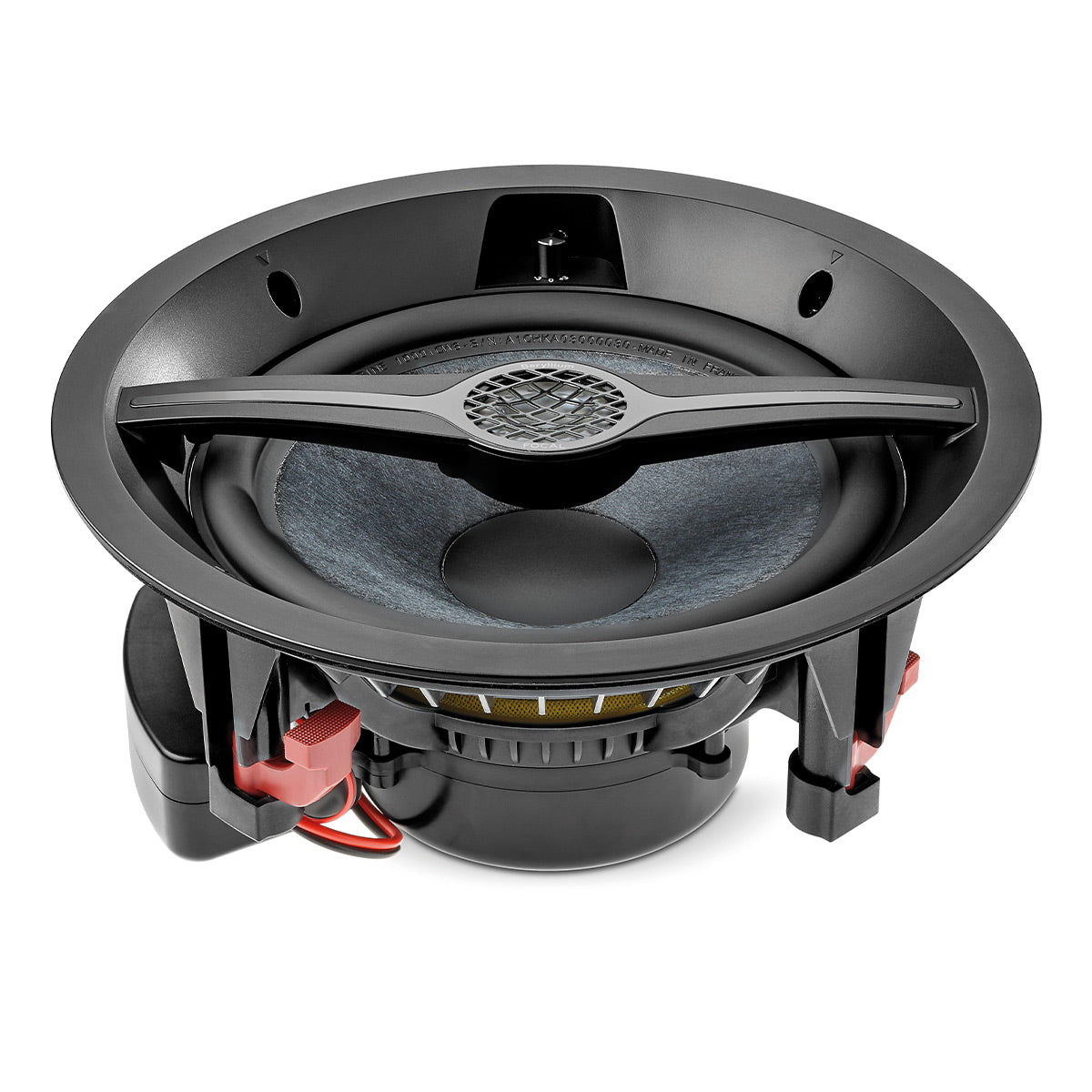 This in-ceiling loudspeaker has a new aluminum inverted-dome adjustable tweeter, which is more compact, improving the sound dispersion. Its two drive units are also equipped with a new Polyglass cone (5” – 13 cm). A new crossover improves the off-axis listening and avoids the “shower effect”. Its three position switch allows choosing the left, center, or right channels to adjust the treble level.