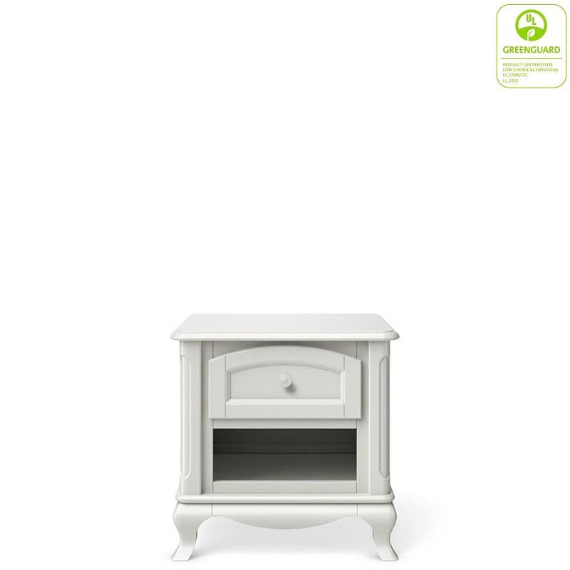Complete your nursery with the Mirabelle Nightstand. Incorporating the designs of the crib and dresser, the nightstand highlights the graceful details on each piece with its French country-style cabriole legs. Decorated with crystal knobs and inset details on its panels, the Mirabelle Nightstand’s two drawers provide a convenient storage solution for baby’s accessories.