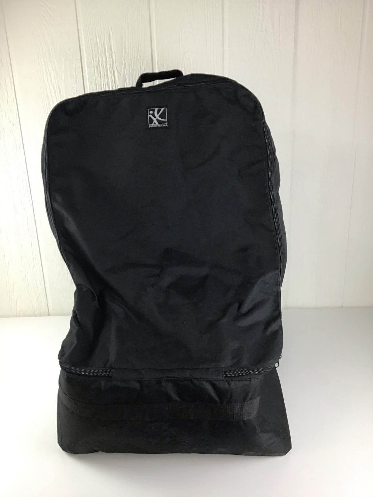 “This handy device turns any toddler car seat into a convenient travel stroller so you can navigate any airport safely and easily with your child and a car seat in tow. Light, compact design is easy to pack away when not in use. Easy to maneuver with one hand.”