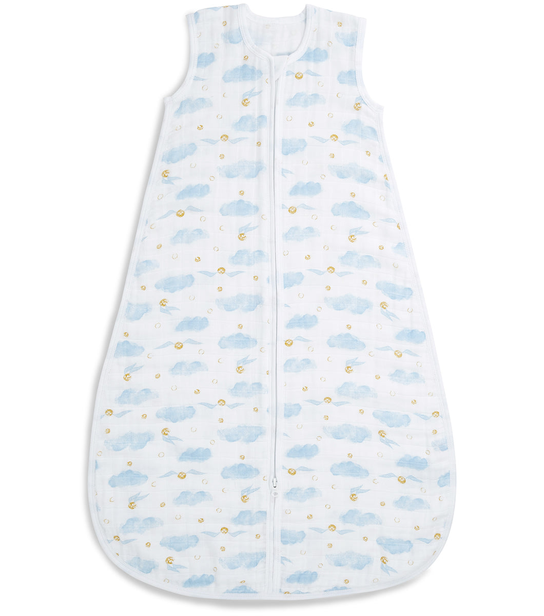 The Halo® SleepSack® wearable blanket replaces loose blankets in the crib that can cover your baby’s face and interfere with breathing. In addition to sleeping safer, it helps babies sleep better, too. It’s a warm cuddly blanket they can’t kick off; ensuring baby sleeps soundly throughout the night.  New, 100% cotton muslin is lightweight, soft and breathable.