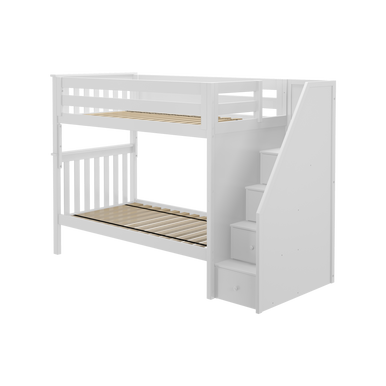 - Reversible, integrated staircase provides are more stable entry to the top bed.