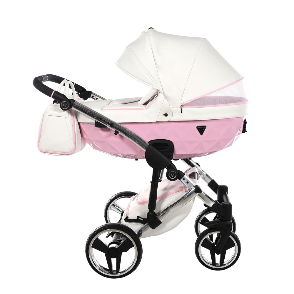- Each pram includes the chassis, the carry-cot bassinet, as well as the seated unit, the beautiful Mommy bag in coordinating colors, a rain cover, mosquito net, cup holder, sunshade, and changing mat. A built-in foot cover is also included.