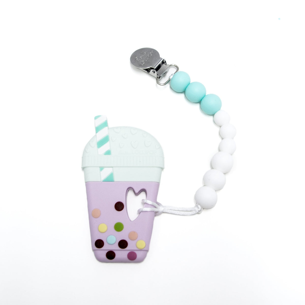 Modern yet timeless, this sleek looking pacifier clip speaks to parents who value minimal and smart design. This Jubilee clip features food grade silicone beads in gradient colors and beech wood beads for a timeless look. Great for newborns.