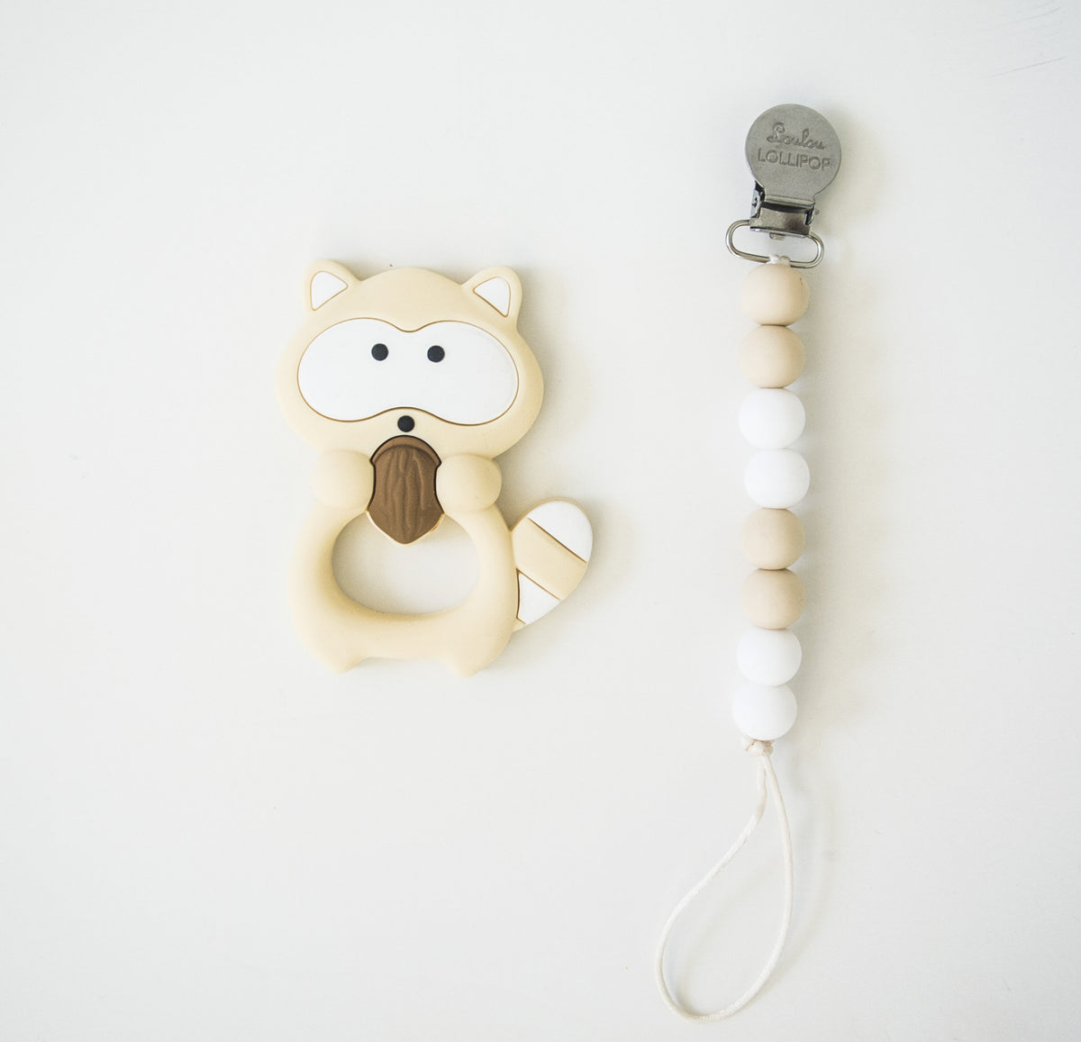 We’ve made our popular pacifier holder even better by updating the clip to a one-piece, molded silicone design that uses no screws or metal parts. Simply loop baby’s pacifier or toy to one end, then fasten the opposite end to clothing, blankets, car seats and more. Our gemstone-inspired clip opens with ease but grips on tight for ultimate security. Featuring a combination of beech wood and food grade silicone beads, this essential coordinates perfectly with our new silicone bibs. What a gem!