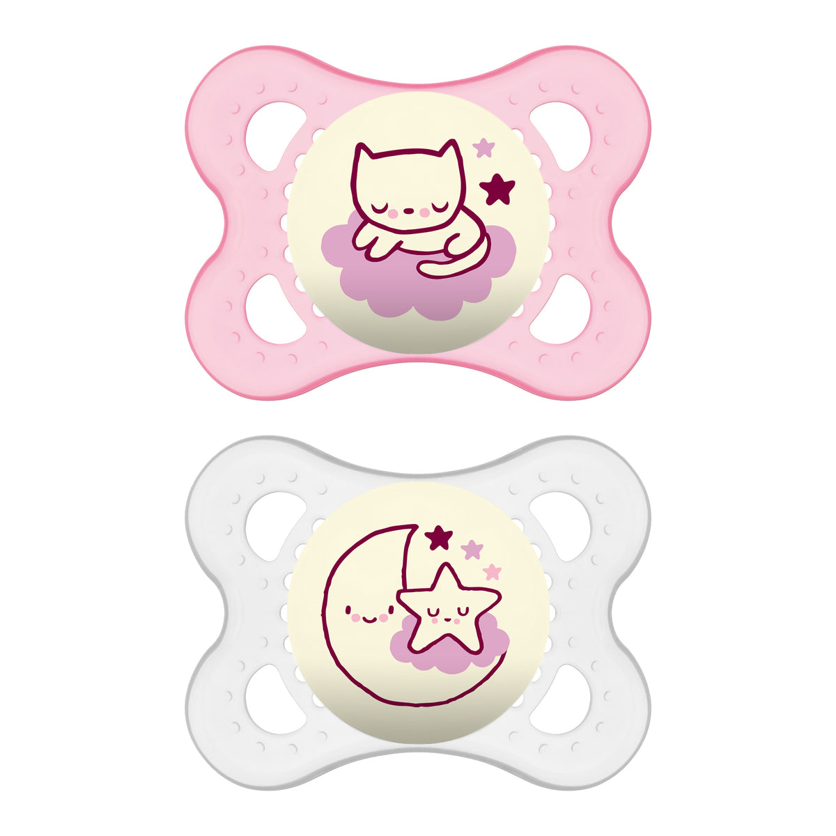SILICONE NIPPLE – The BPA-free silicone nipple is a signature MAM pacifier design, with silky SkinSoft material and a symmetrical shape that’s ideal for jaw and teeth development.