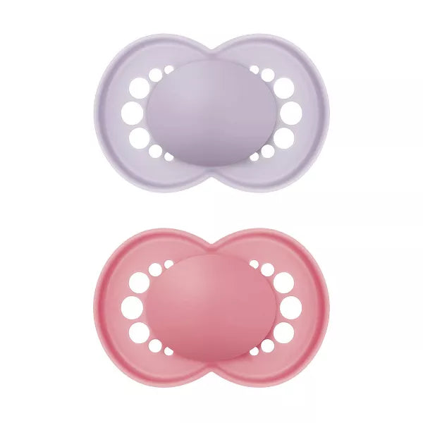 Textured surface and multiple small openings on the pacifier shield allow air to circulate and baby’s skin to breathe