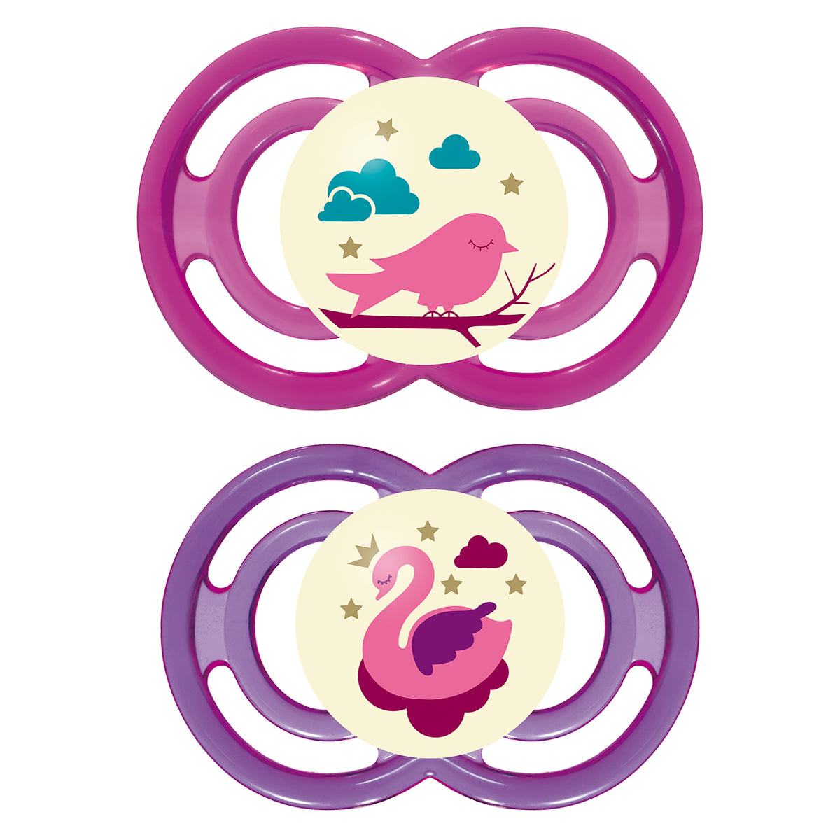 - PRODUCT DETAILS – MAM Night Pacifiers, 2-Count Baby Girl Pacifiers, 0-6 Months, Sterilizing Pacifier Holder
