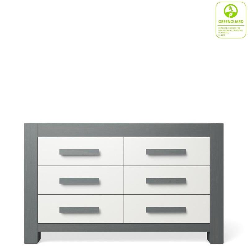 The Emory Farmhouse 6-Drawer Dresser is the perfect companion to the Emory Farmhouse 4-in-1 Convertible Crib. With matching thoughtful X-brace details and a beautifully textured finish inspired by hand-crafted barn doors, the double dresser is the perfect accent piece to complete your rustic nursery.