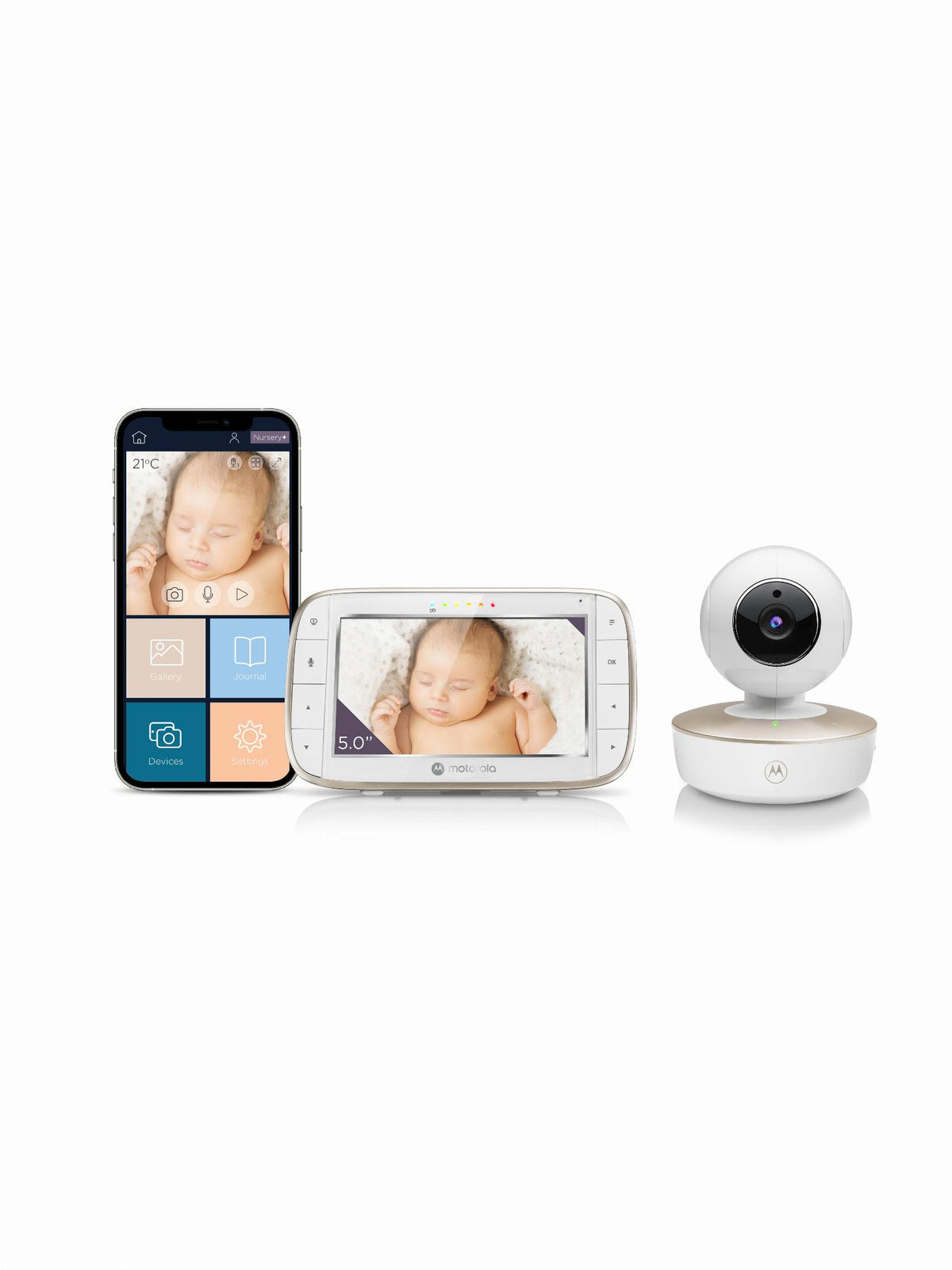 - Baby Monitor – This video baby monitor has a 5″ screen and two cameras