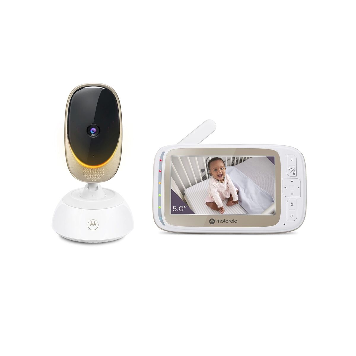 PIP, the friendly night vision camera that lets you keep an eye on your baby. The large color 5” portable monitor has two noise level indicator bars and much more, so you never have to worry about not hearing your baby.