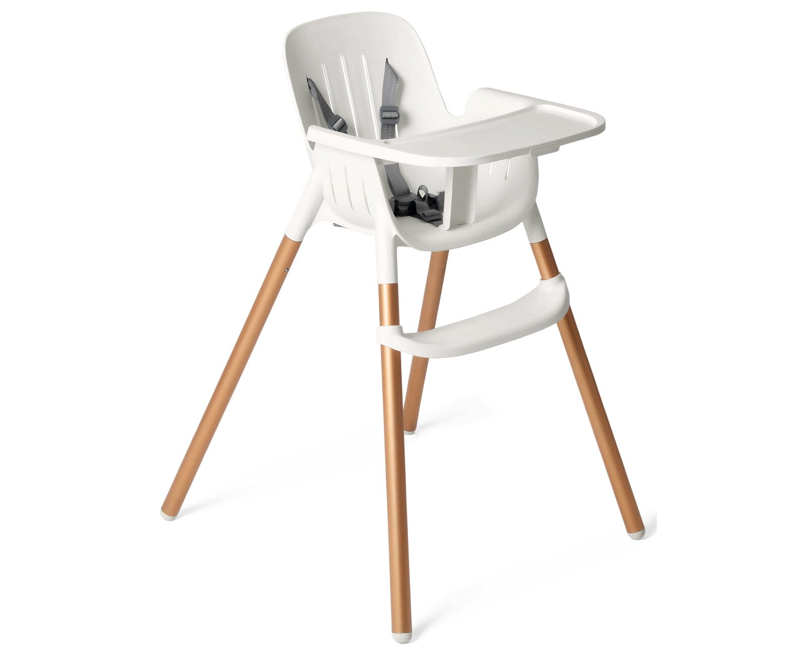 - The faux wood print on the seat’s metal legs complements home dcor. The 3-position tray has a built-in cup holder and dishwasher-safe removable insert tray; for ages 0-36 months or up to 33 pounds, whichever comes first