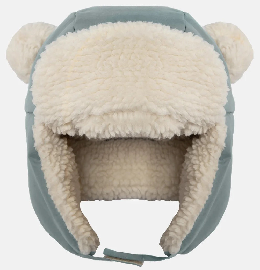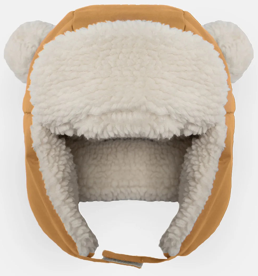 Pixie hat with ties at neck, made in our stretchy rib knit fabric.