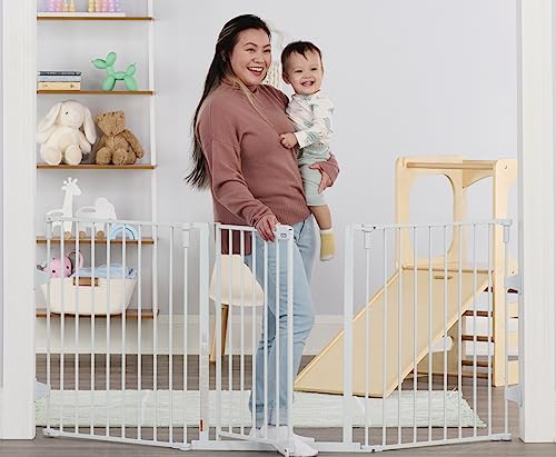The Safety 1st Easy Install Walk-Through Gate provides convenient access between rooms without needing reinstallation each time. Featuring SecureTech® with a red-to-green indicator for secure locking, this pressure-installed gate offers flexibility and can be easily removed for non-use. It stands 28 inches high and adjusts from 29 to 38 inches to fit various doorway widths. Designed for child safety, it also serves to keep pets out of designated areas within your home.
