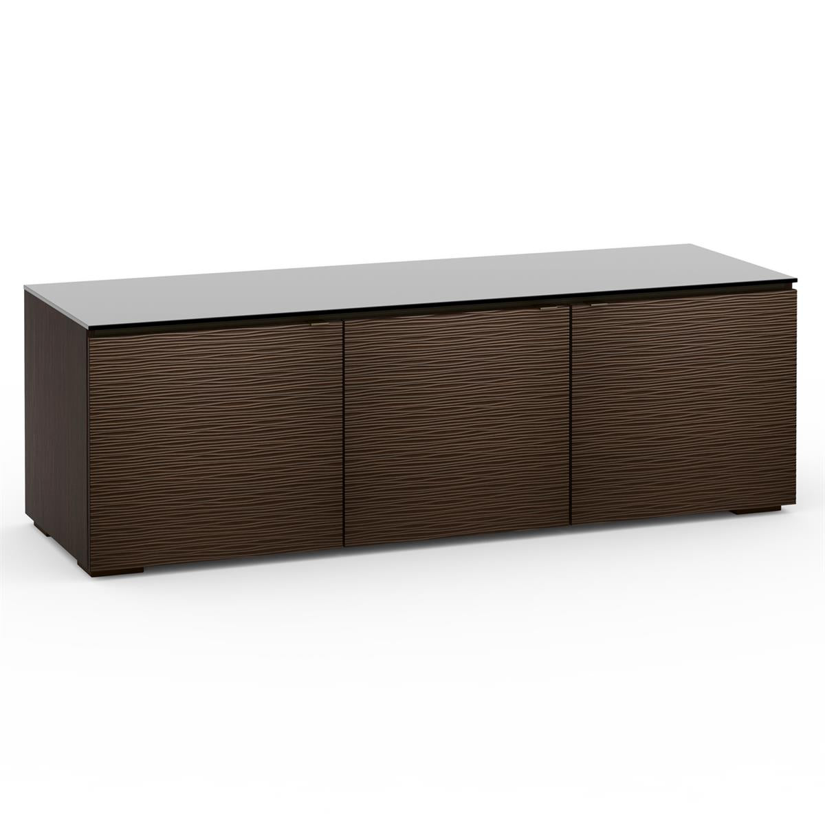 Its essence is casual comfort made unique by wide-framed wood doors with smoked glass inserts. The thick wood cross sections of top and sides give this unit a dramatic look.