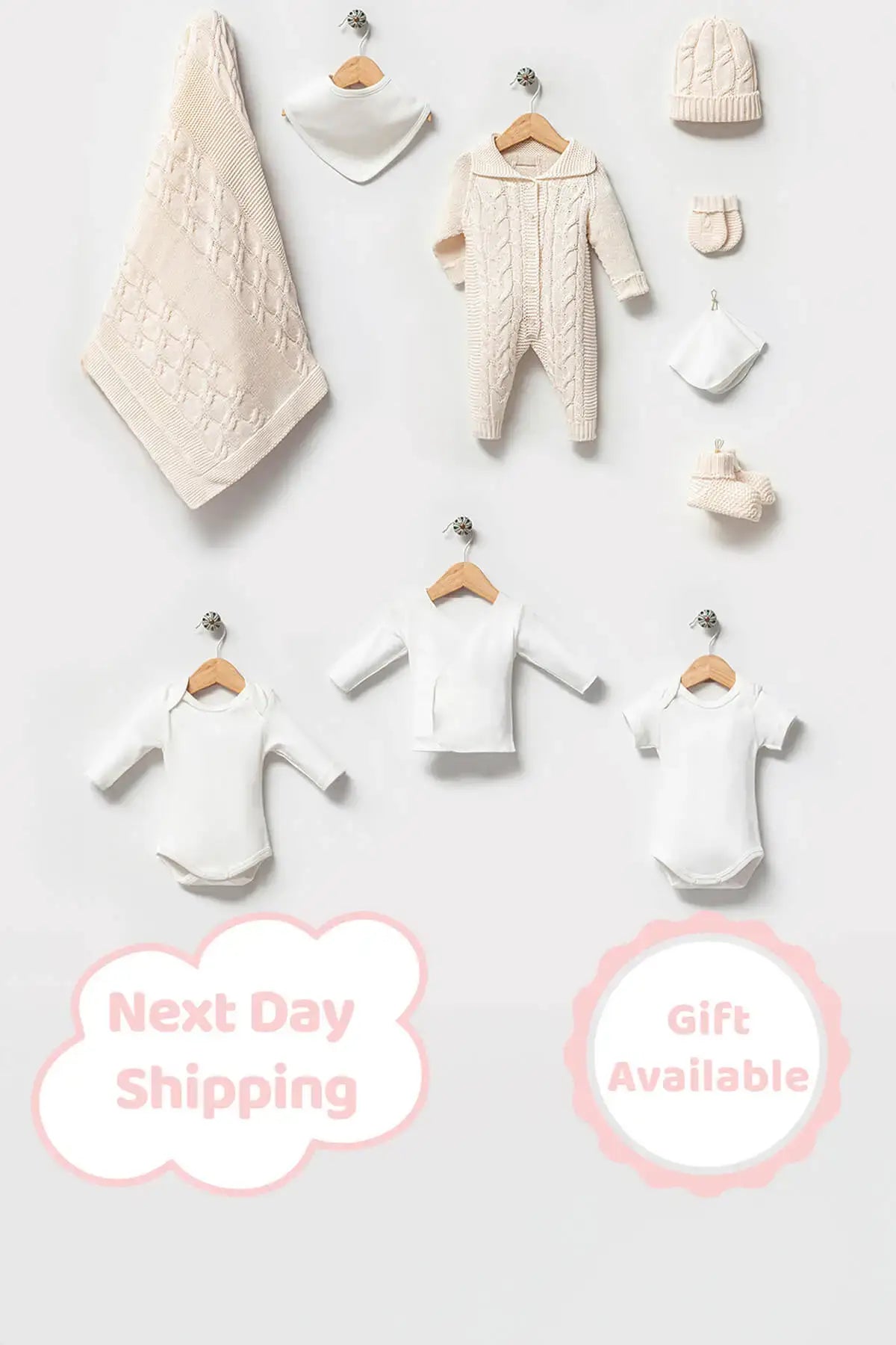 - Comprehensive 11-Piece Set:This all-inclusive set features everything from a luxurious blanket to a stylish jumpsuit, along with essential accessories like a bib and booties, ensuring your baby girl is perfectly outfitted from head to toe.