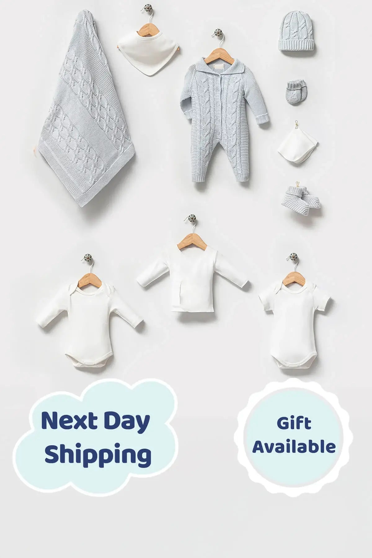 This set is perfect for those searching for luxury newborn gifts, providing warmth, elegance, and comfort from the very first day. It is also an ideal choice for a newborn boy’s coming home outfit in the summer, offering a blend of style and practicality. Additionally, the set includes a gown for the newborn, making it a comprehensive package of luxury and comfort for your little one.
