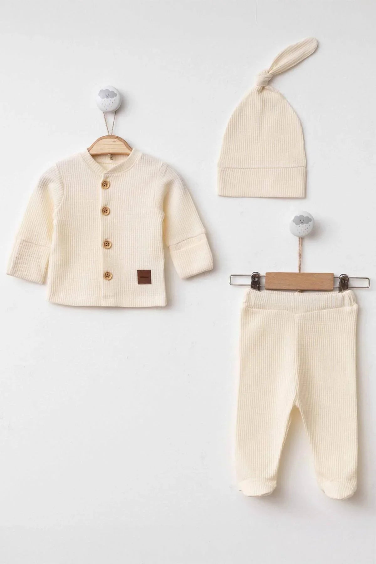 The set includes a hat, sweatshirt, and pants, keeping your baby boy warm all the time.