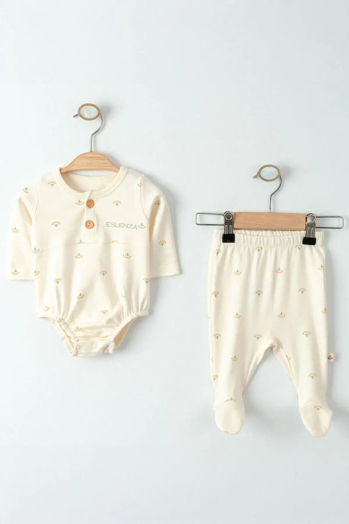 Pants:Baby trousers in the same color and texture with closed legs at the cuffs. The trousers are comfortable to wear thanks to the elasticated waist.