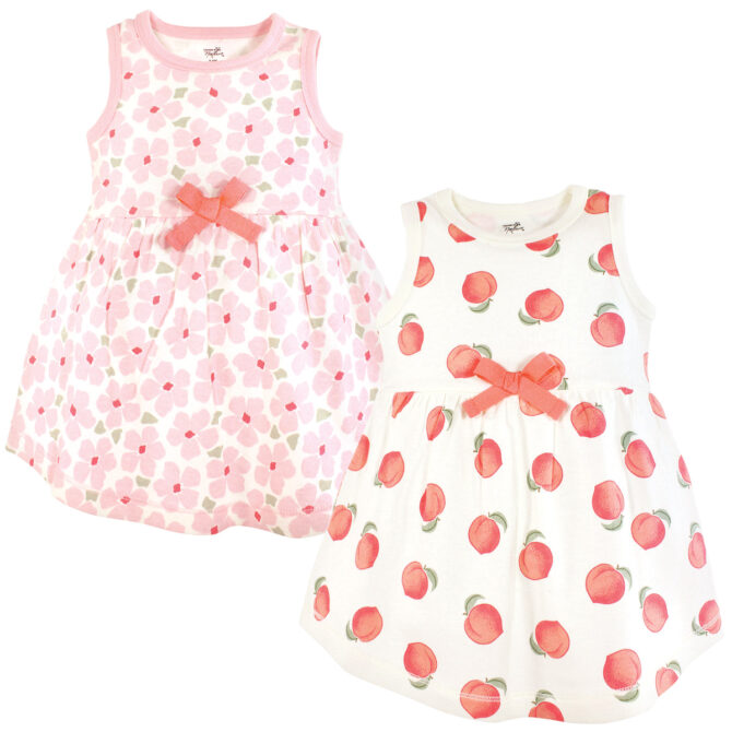 The sweet Touched by Nature Peach Organic Cotton Dresses are perfect for parties or play dates. This stylish pair includes 2 sleeveless dresses in adorable prints and are crafted of soft organic cotton, perfect for your precious one’s delicate skin.