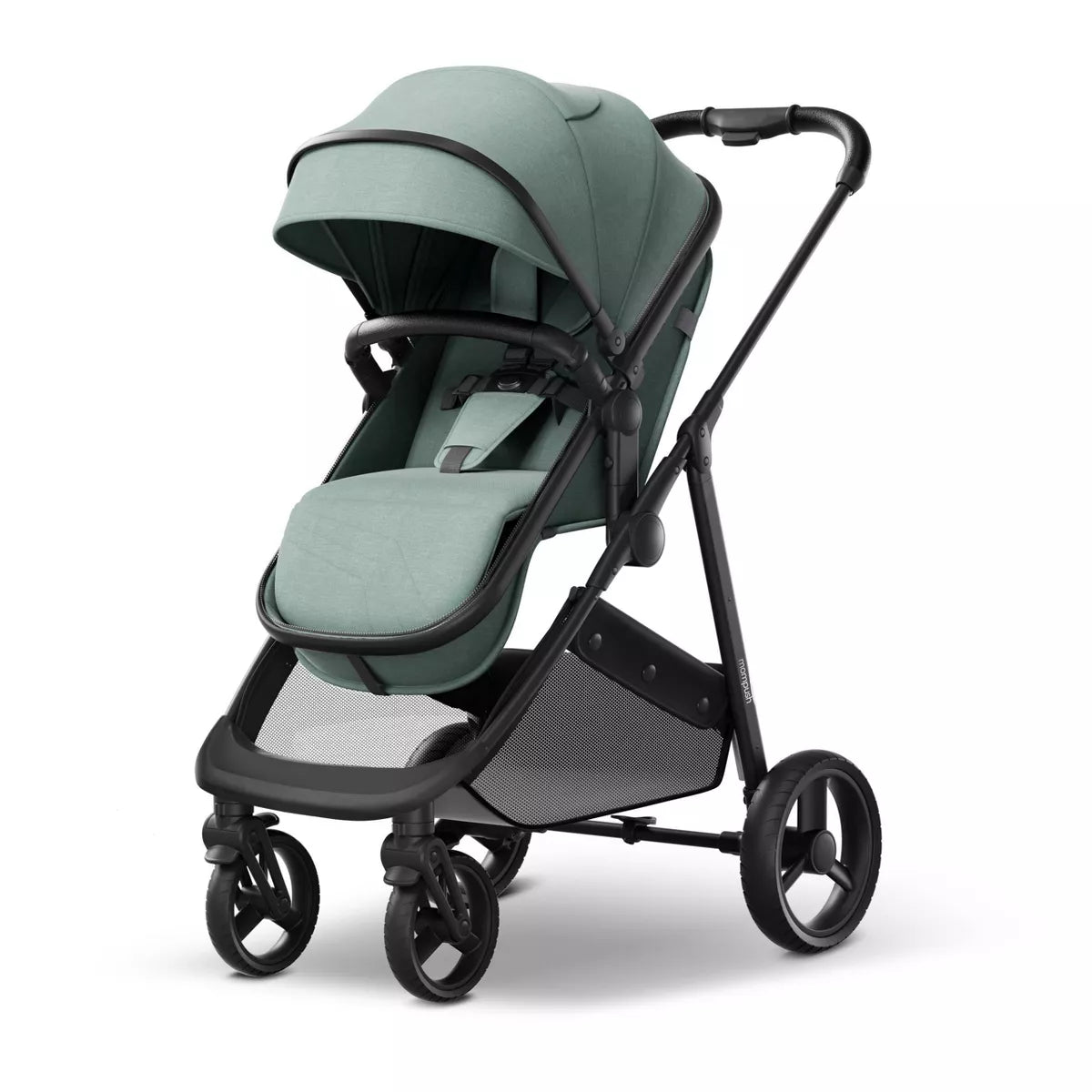 The stroller folds into itself to keep seat fabrics clean & hygienic.