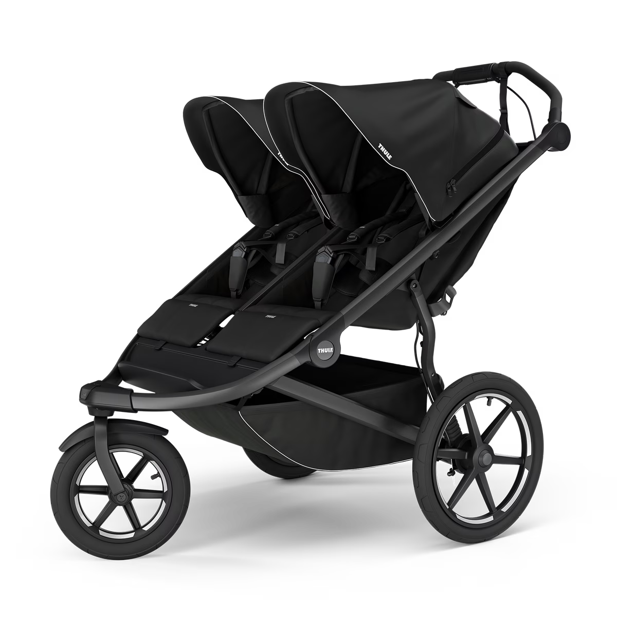 A smooth glide is of course essential for a comfortable ride, which is why we’ve outfitted our tandem stroller with solid wheels, textured handlebars and a reliable shock-absorbent framework. Made from hardened rubberized material, the wheels never deflate or succumb to rugged terrain. Measuring in at 34” x 24” x 14” when folded, the stroller stores easily under the bed, in a closet or in the trunk of your car, minivan or SUV.