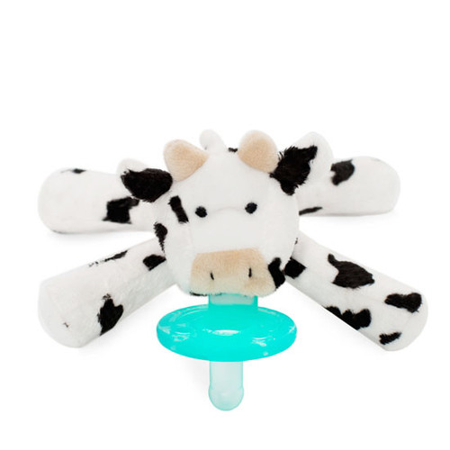 - Plush animal makes it easy for baby to grasp and manipulate the pacifier.