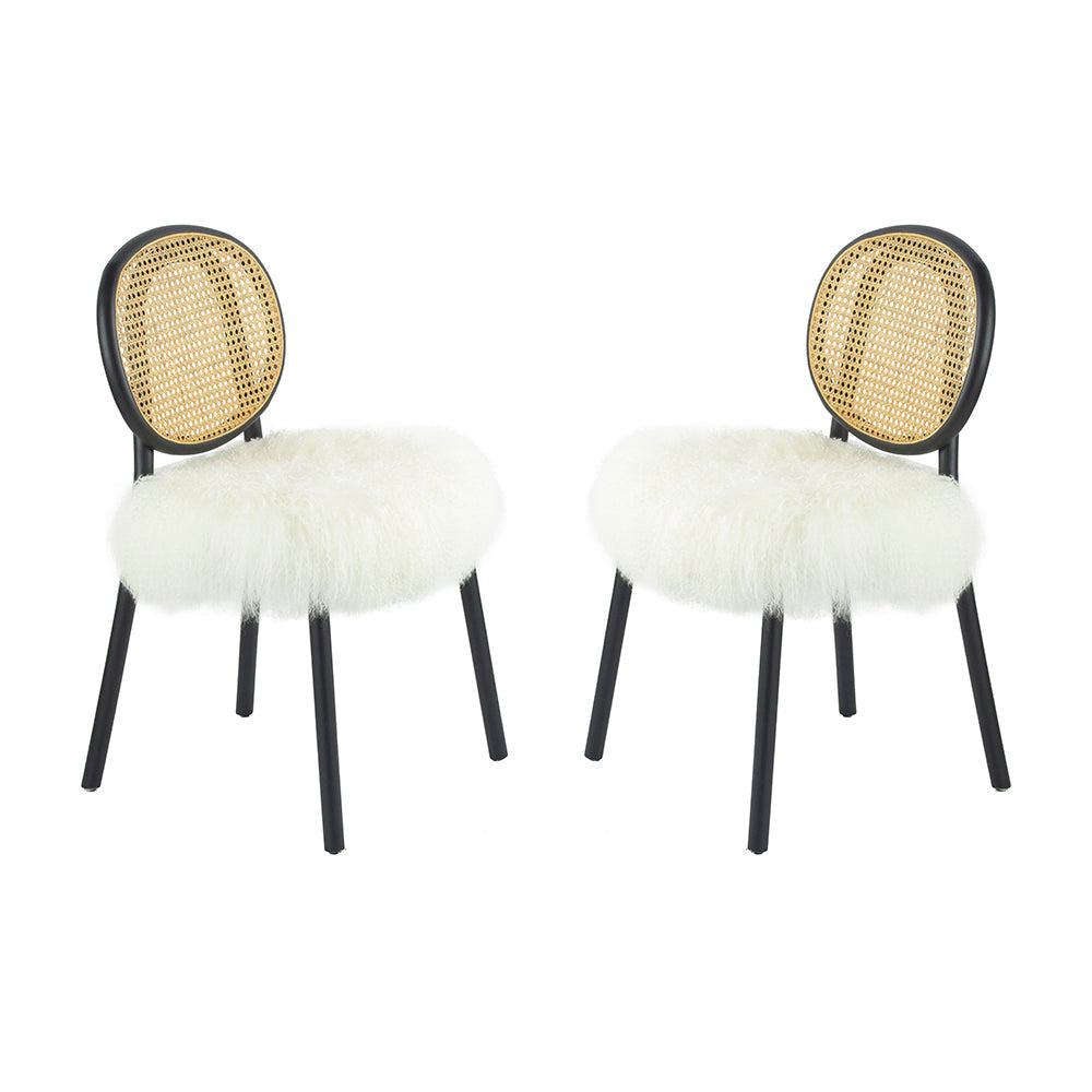 A&B Home 19″ x 34″ Set of Two Bundle of 4 Black Wood Frame With White Fur Covered Seat Dining Chairs
