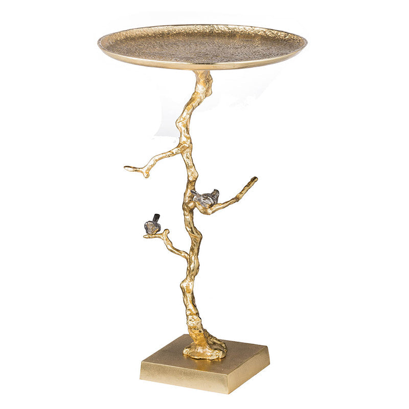 A&B Home 17″ x 28″ Bundle of 11 Round Polished Tabletop and Metal Tree Branch Side Table With Gold Bird Accent