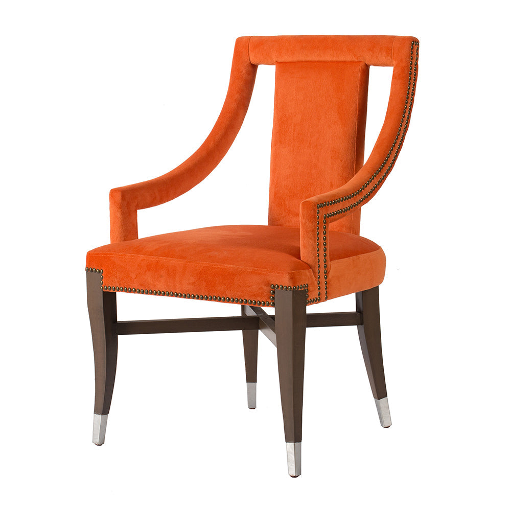 A&B Home 23″ x 36″ Bundle of 5 Brown Rubberwood Legs With Orange Velvet Upholstery Armchair
